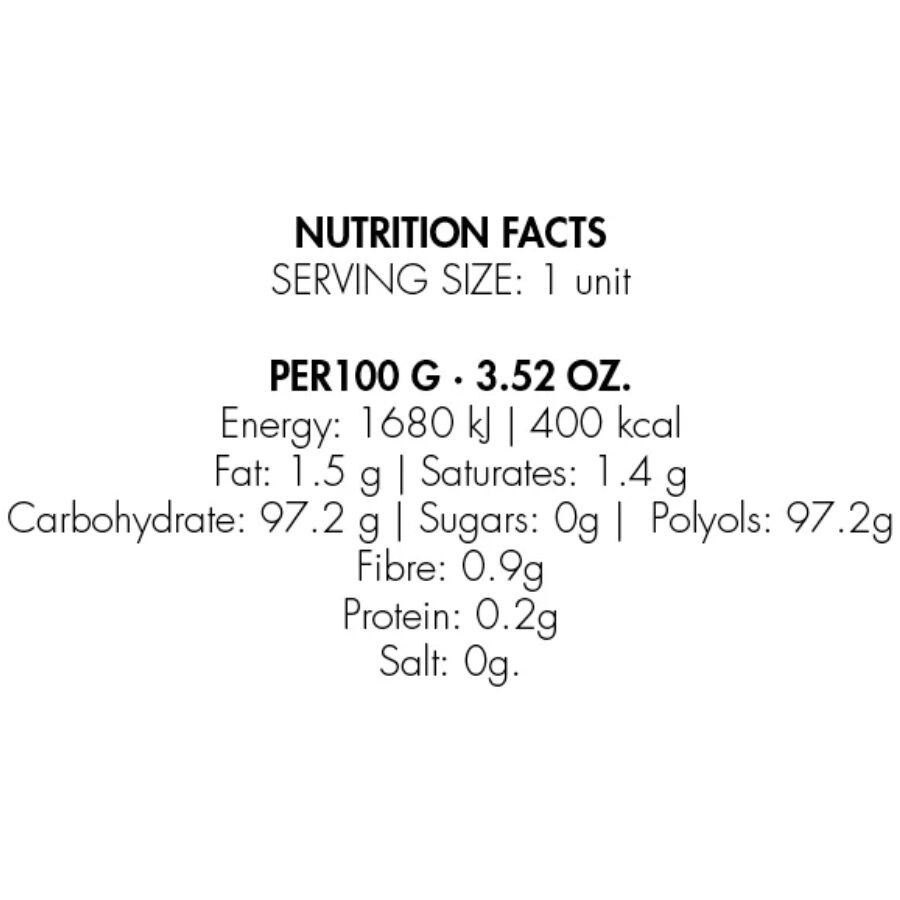 Összetevők: Édesítőszerek (Sorbitol - E420, Xylitol - E967, Szucralose - E955), Magnézium-stearátos - E470b), ízesítők (mentolkristályok, borsmenta íz, hűtő anyag)