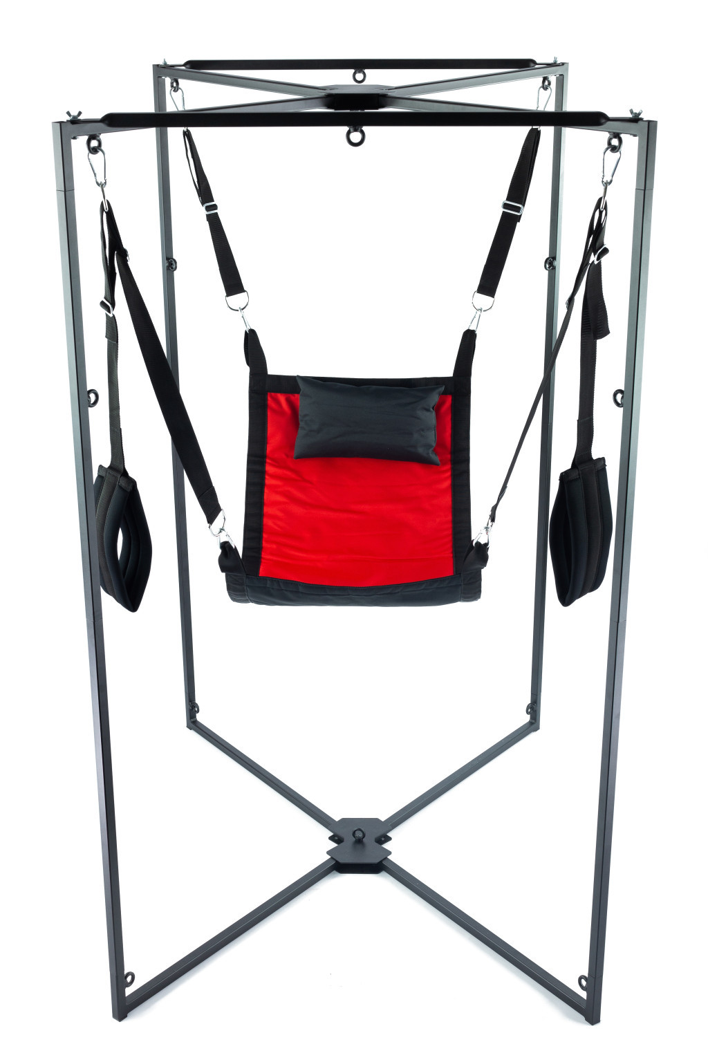 Vibráló Elegancia: Kit Sling Tissu Carré Rouge-Noir Armature Noire