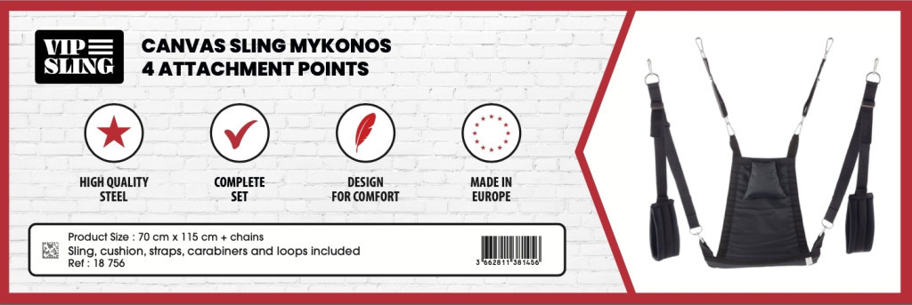 Fedezd fel a Mykonos anyagú hordszíjat, amely négy rögzítési pontjával és állítható pántjaival a szórakozás új dimenzióját nyújtja! Ideális választás prémium minőségű intim élményekhez - kényelmes lábtartókkal és praktikus tárolótáskával. Kényeztesd magad, és teremts egyedi pillanatokat!